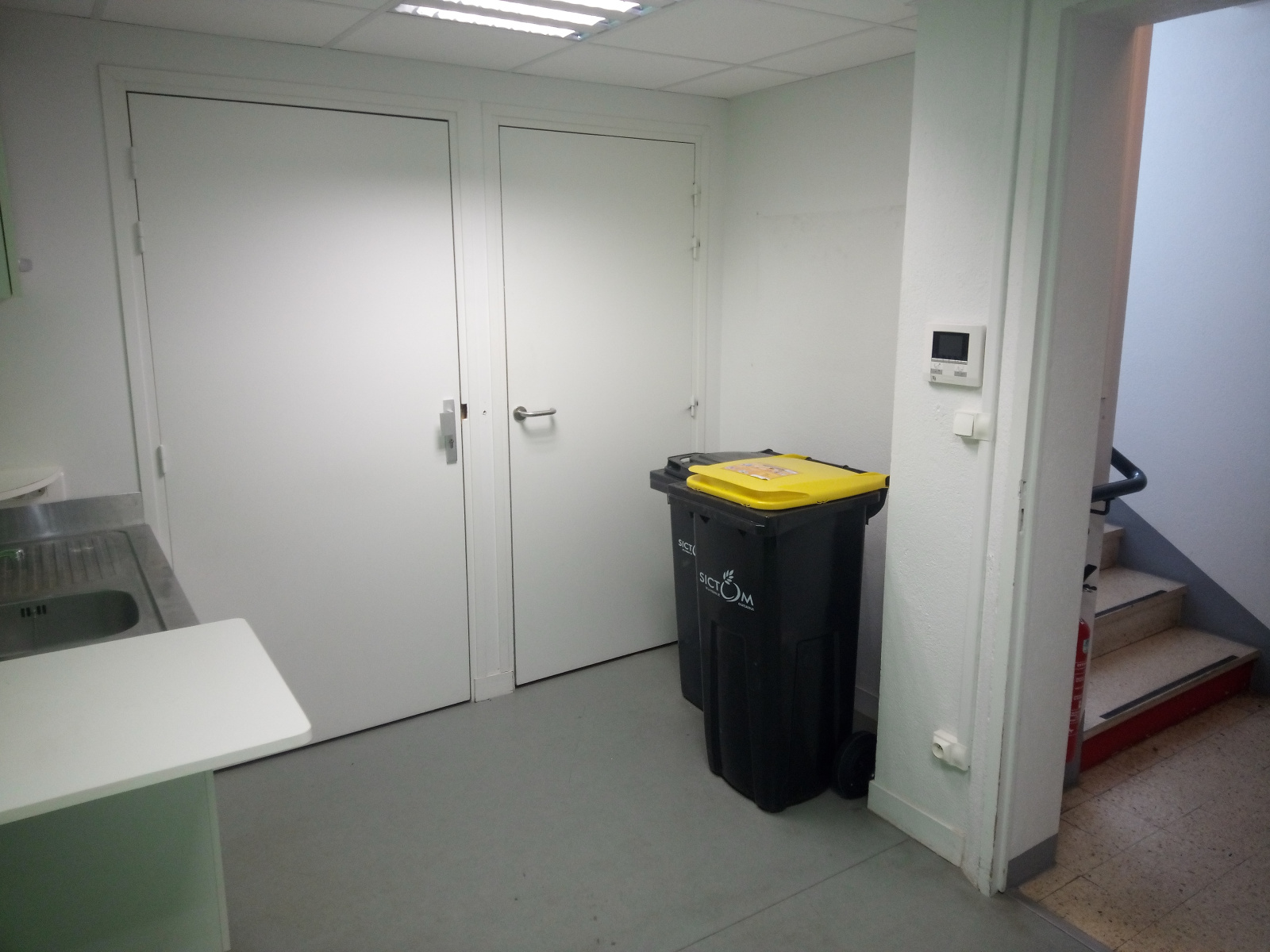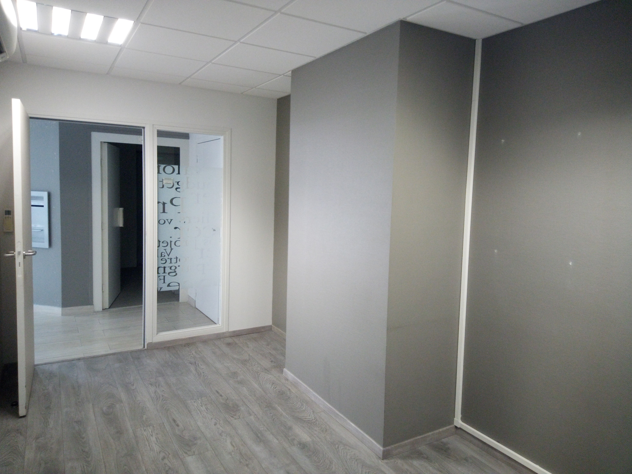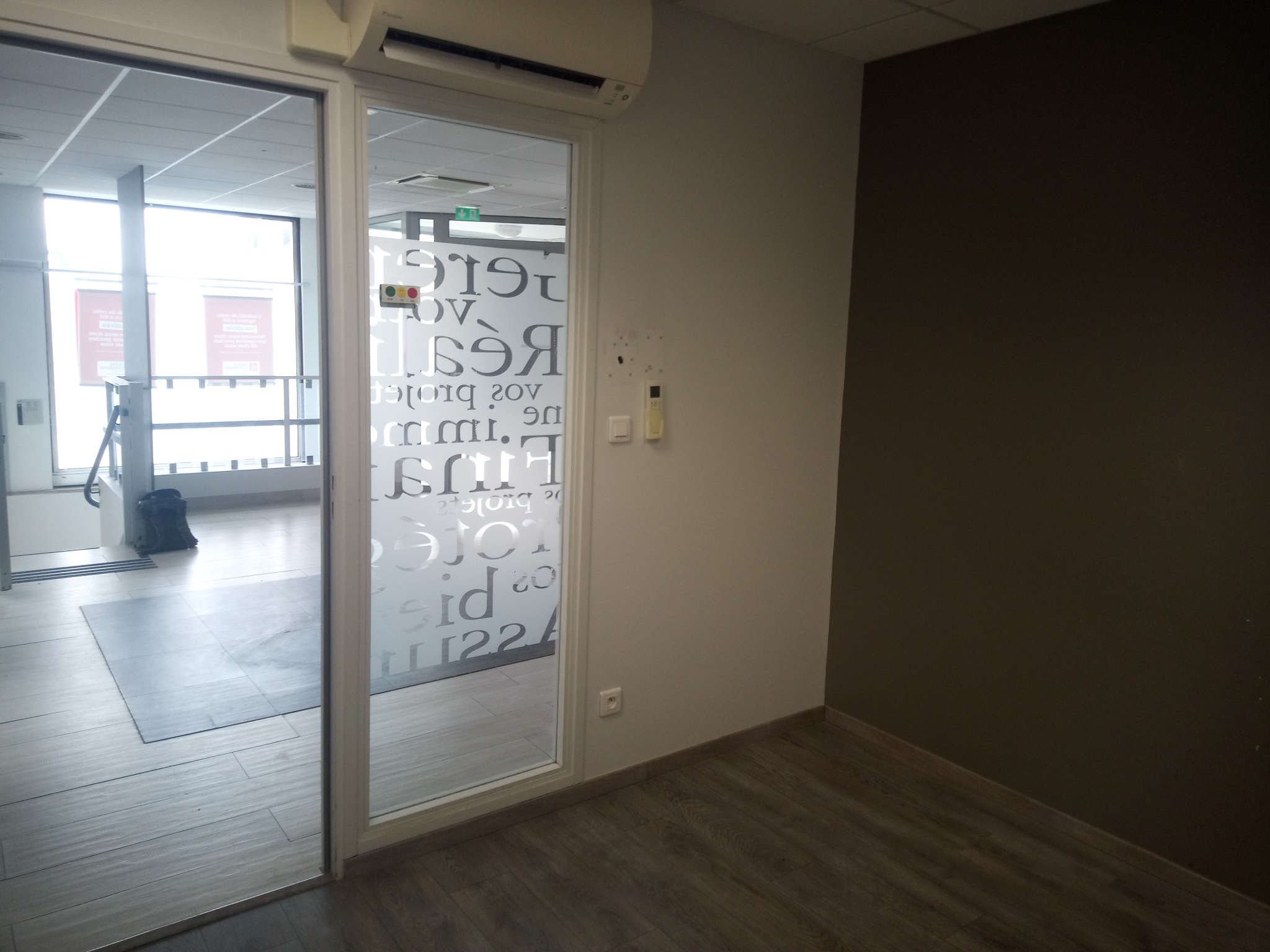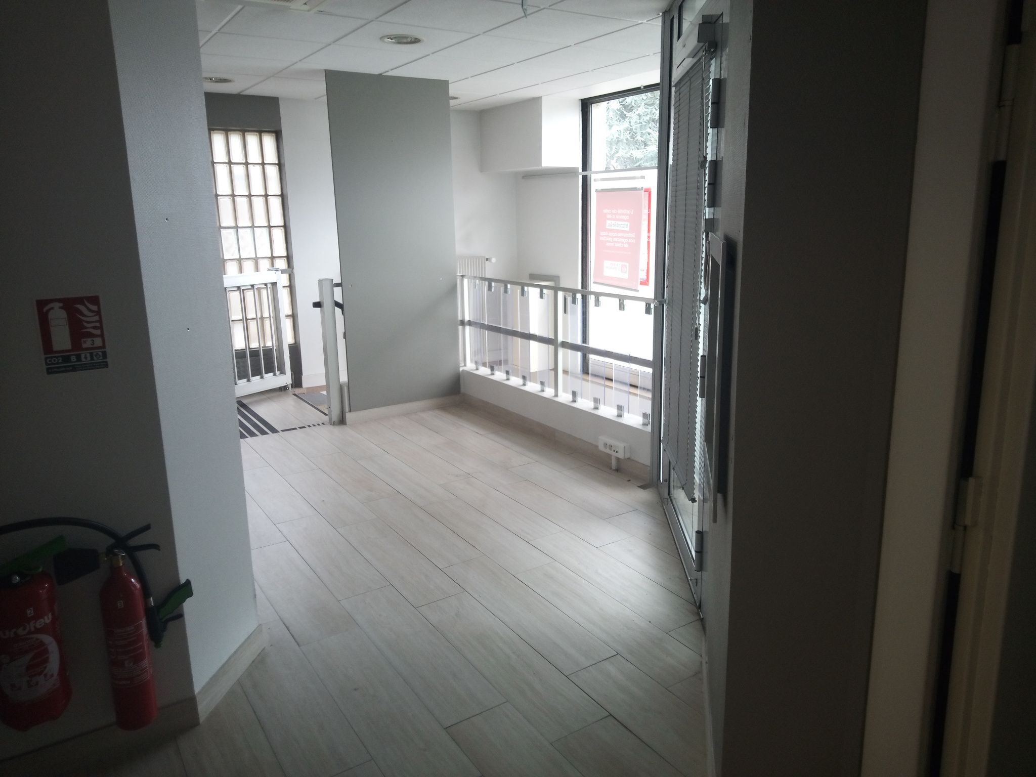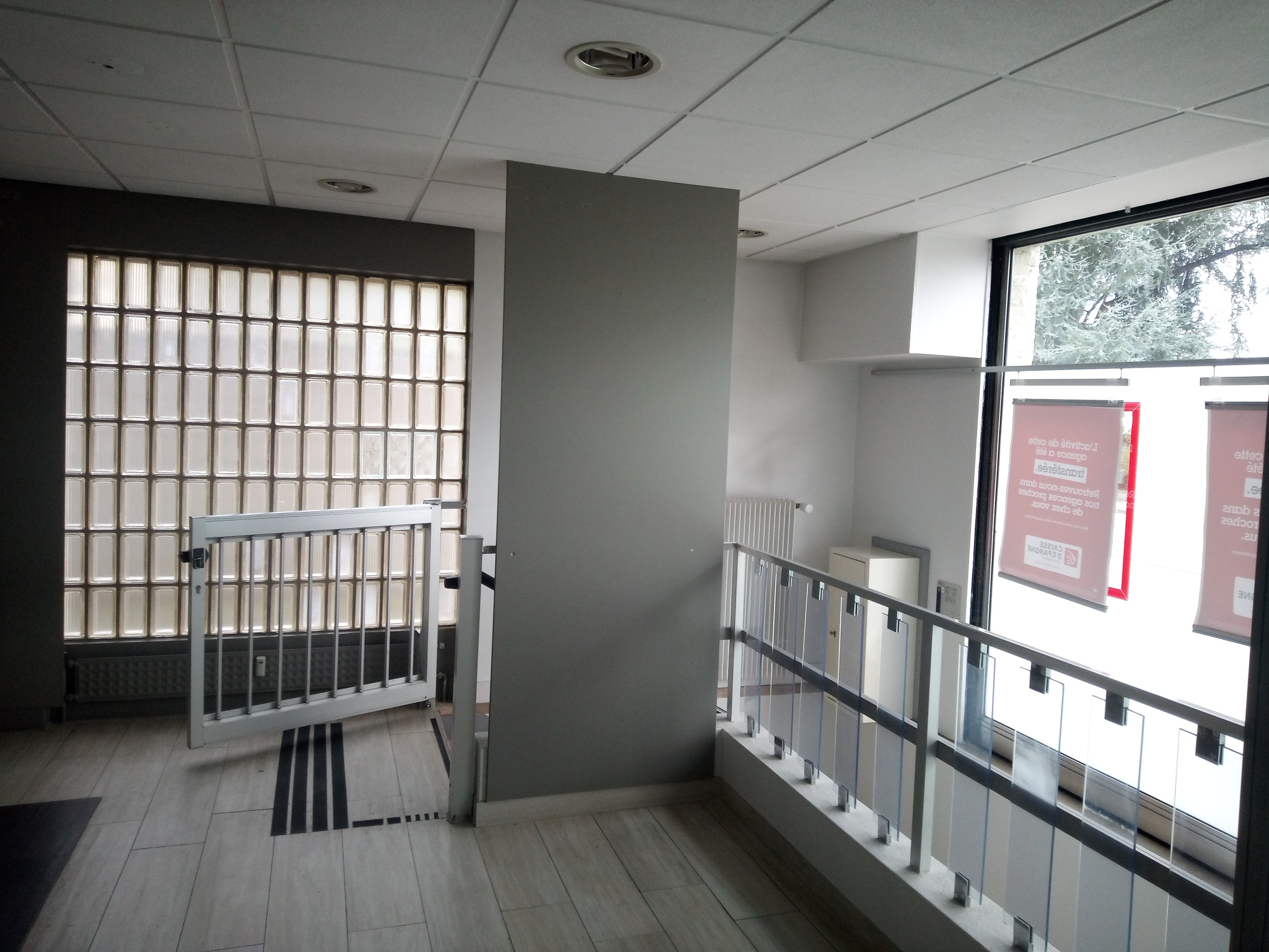 Grande entrée avec dégagement, 2 bureaux, sanitaires, espace sécurisé pour distributeur bancaire.