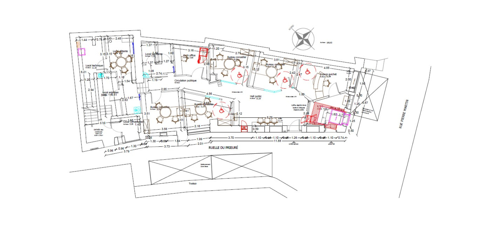 Au rez-de-chaussée: Un local commercial (Vitrines sur rue, hall d’accueil, bureaux, sanitaires)
