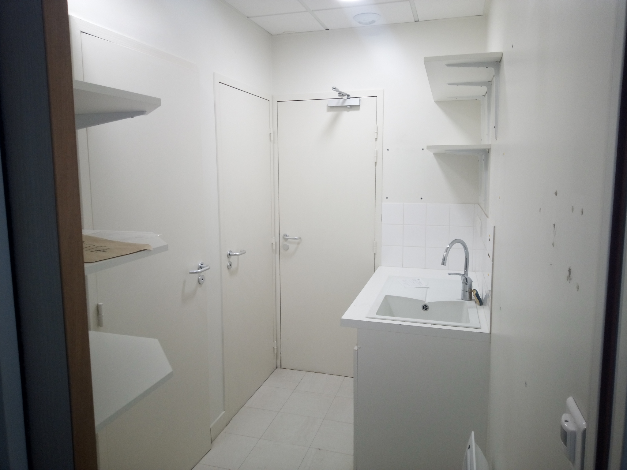 l’extérieur, local informatique, pièce avec évier de cuisine et 2 water-closets