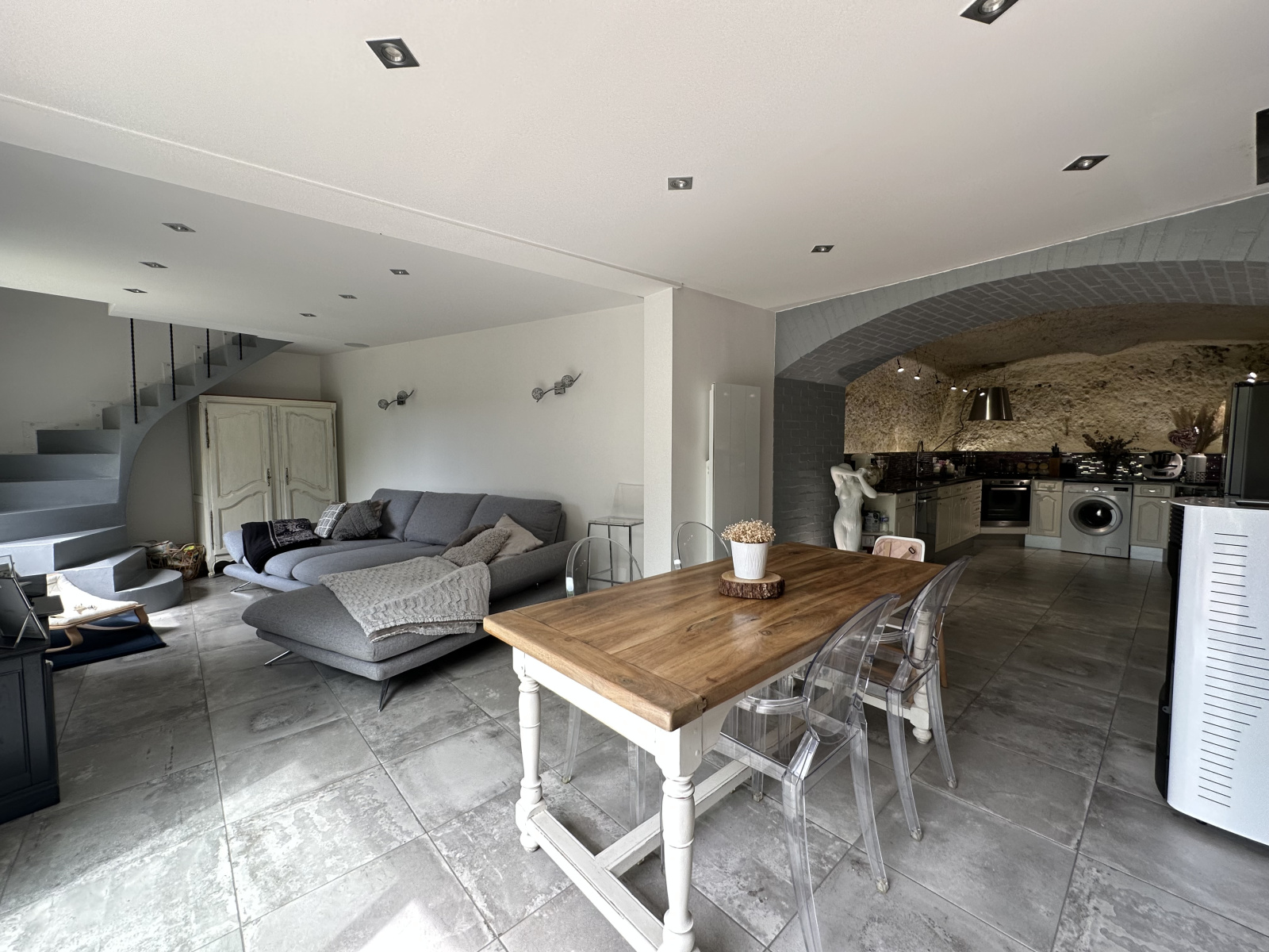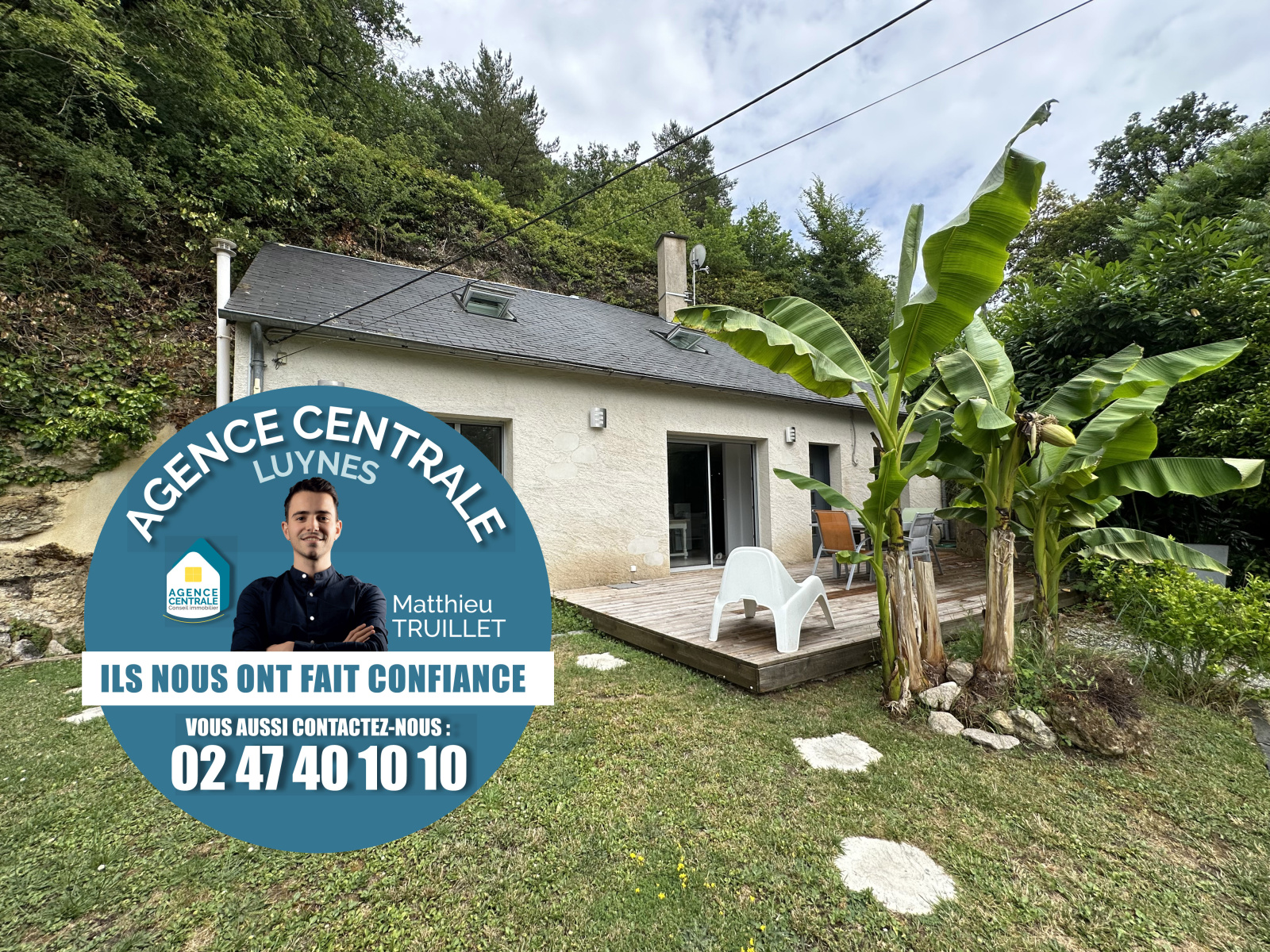 VENTE REALISEE PAR L'INTERMEDIAIRE DE VOTRE AGENCE. Luynes (37230). Exclusivité de votre agence. Habitation semi-troglodytique. Vue dégagée sur la campagne environnante. 90 m² utiles. 1 chambre avec dressing au rez-de-chaussée + 2 pièces mansardé à l’étage + grenier. Ensemble en parfait état d’entretien ayant bénéficier de travaux de rénovation de qualité. Séjour avec cuisine ouverte 43 m² avec baie vitrée s’ouvrant sur une terrasse exposé OUEST. Chauffage électrique + poêle à granulés dans le séjour (Richard Le Droff installé en 2022). Jardin 250 m² devant la maison + 1800 m² de terrain coteau et bois au-dessus de l'habitation (accessible par un escalier extérieur et un chemin en pente). Assainissement individuel (vidange 2022). Portail motorisé. Ballon d’eau chaude + adoucisseur 2019. Cette maison vous est proposée par l'Agence centrale de LUYNES 02.47.40.10.10. 12 kilomètres de la ville de Tours. La commune de Luynes, chef-lieu de canton, fait partie de l’agglomération de TOURS METROPOLE et est située au cœur du Val de Loire, au pied des coteaux de la Loire (site classée au patrimoine mondial de l’UNESCO). Elle comptait 5.400 habitants au dernier recensement connu. Les principales zones d’urbanisation sont le centre-ville, d’une grande qualité patrimoniale, implanté dans le val adossé au coteau (dominé par un château du XIIème siècle), un plateau ayant fait l’objet d’extensions urbaines récentes et étalées ainsi que de nombreux petits hameaux et habitations anciennes disséminées sur ce même plateau. Les prix indiqués s'entendent honoraires d'agence inclus à la charge du vendeur. Frais de notaire en sus. Document non contractuel.