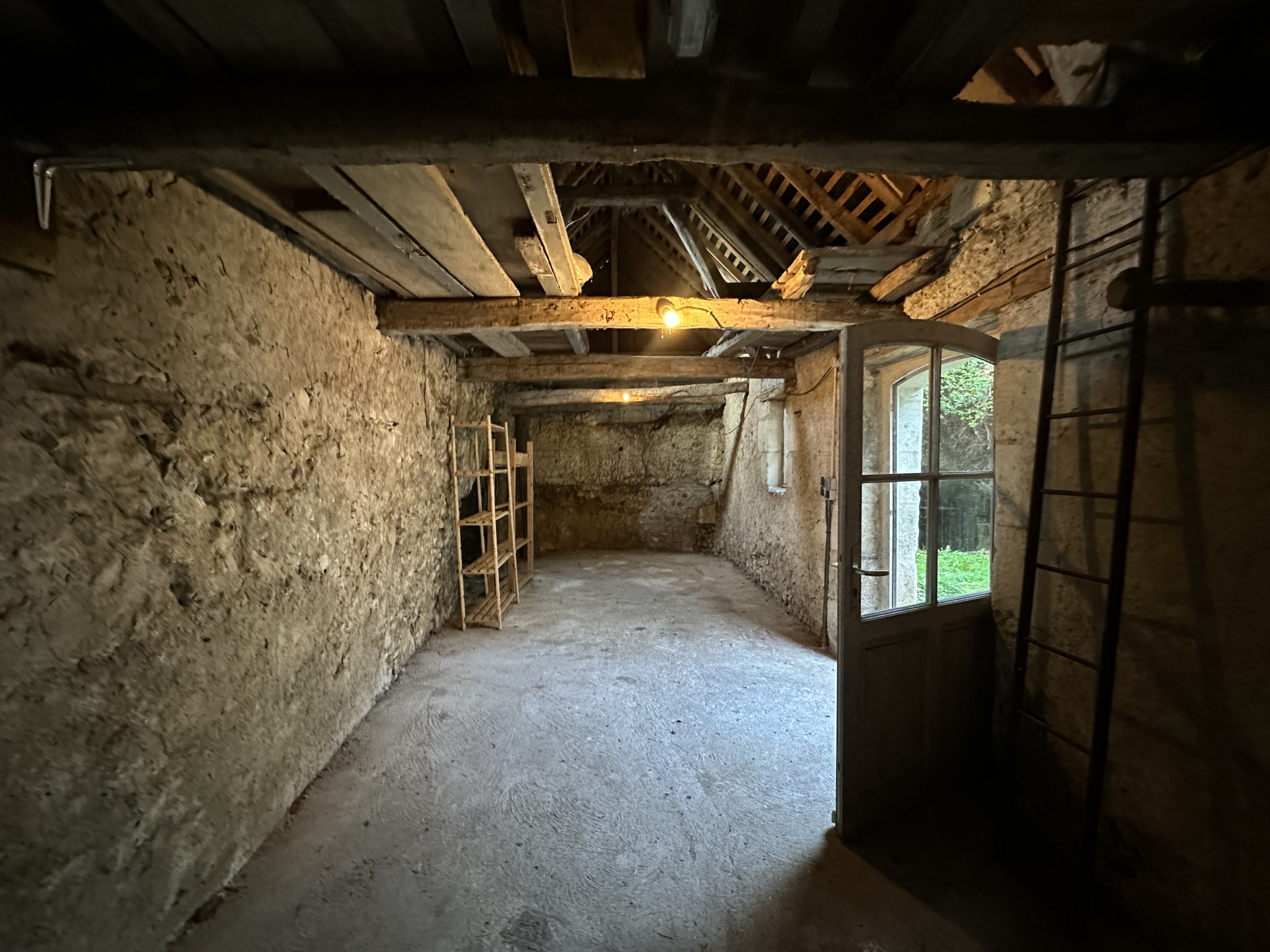 91 m² habitables + dépendance à aménager, faisant face à la maison principale, d’environ 20 m² avec électricité, ainsi que des caves creusées dans le roc (travaux de confortation à prévoir).