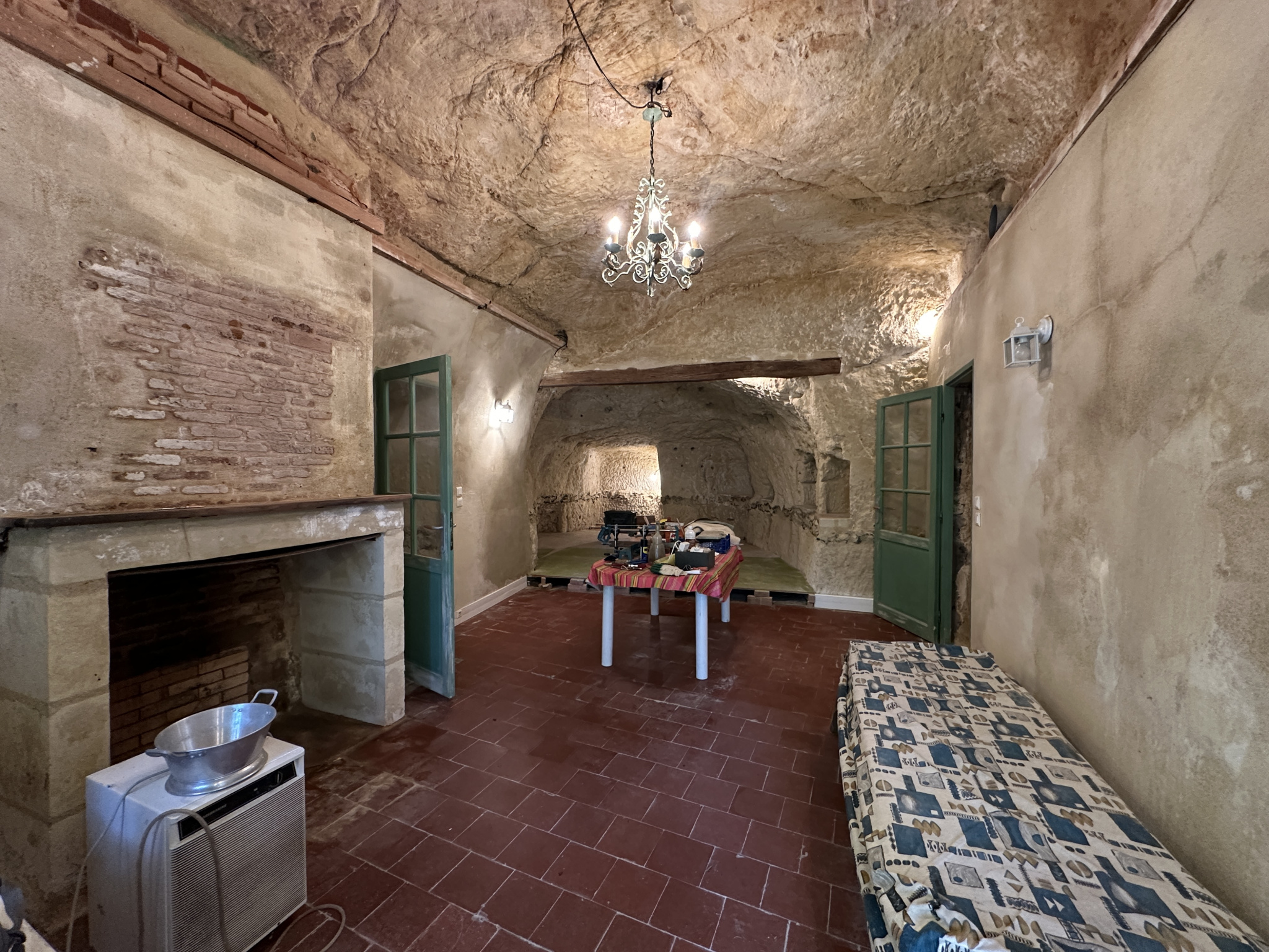 deux pièces semi-troglodytiques en enfilade avec cheminée à foyer ouvert et remise.