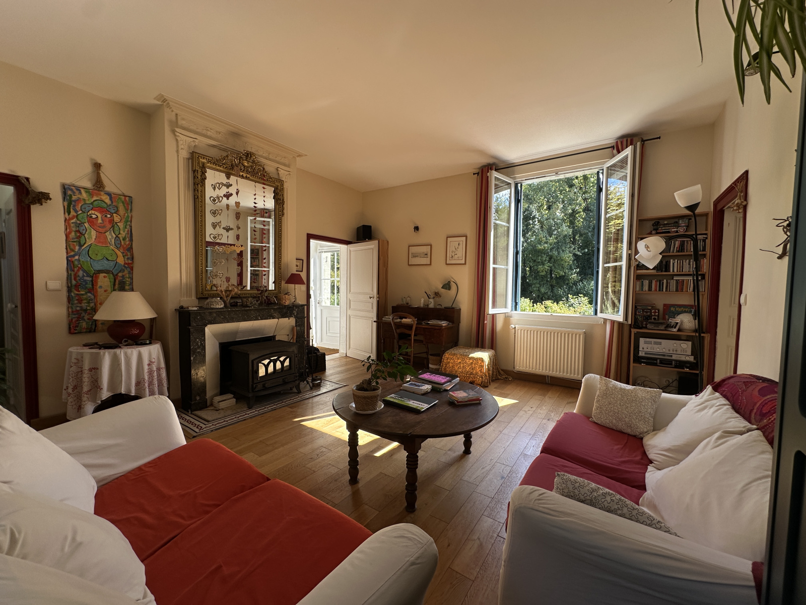 La demeure se compose d’espaces de vie chaleureux et fonctionnels avec un salon (agrémenté d’un poêle à bois) communiquant (par un dégagement donnant accès à la terrasse), avec une cuisine aménagée ouverte sur une terrasse arborée surplombant le jardin, et un séjour lumineux de 20 m².