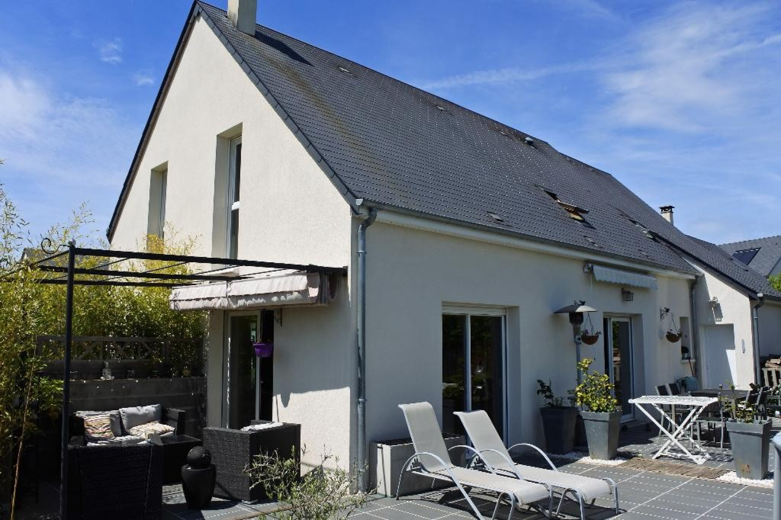 COMPROMIS DE VENTE SIGNE PAR VOTRE AGENCE. EXCLUSIVITE DE VOTRE AGENCE. Luynes 37230. Écoles, collège, bus FIL-BLEU, supermarché, piscine etc. à moins de 5' à pied. 6 pièces (120 m2 habitables/132 m2 utiles + garage 30 M2). Séjour 36 m2 (triple exposition et 2 terrasses 100 m2 en tout) + 4 chambres + mezzanine. 3 salles d'eau. Garage avec porte télécommandées + stationnements extérieurs. Nombreux rangements. Terrain 605 M2 clos de haies. Rue trés calme et sécurisée. stationnement facile. Environnement calme et résidentiel. Chemins de randonnées 2' à pied. Bourg 7-8' à pied. Construction 2009 (ERICLOR) élevée sur vide-sanitaire. Dépenses EDF : 1.400 €/an + 300 €+- de bois pour le poêle. Réserve d'eau pluviale 3.000 litres dans le jardin. Adoucisseur d'eau. Visiophone. Le prix annoncé s'entend honoraires d'agence 3.8 % inclus et frais de notaires en +. Document non contractuel.