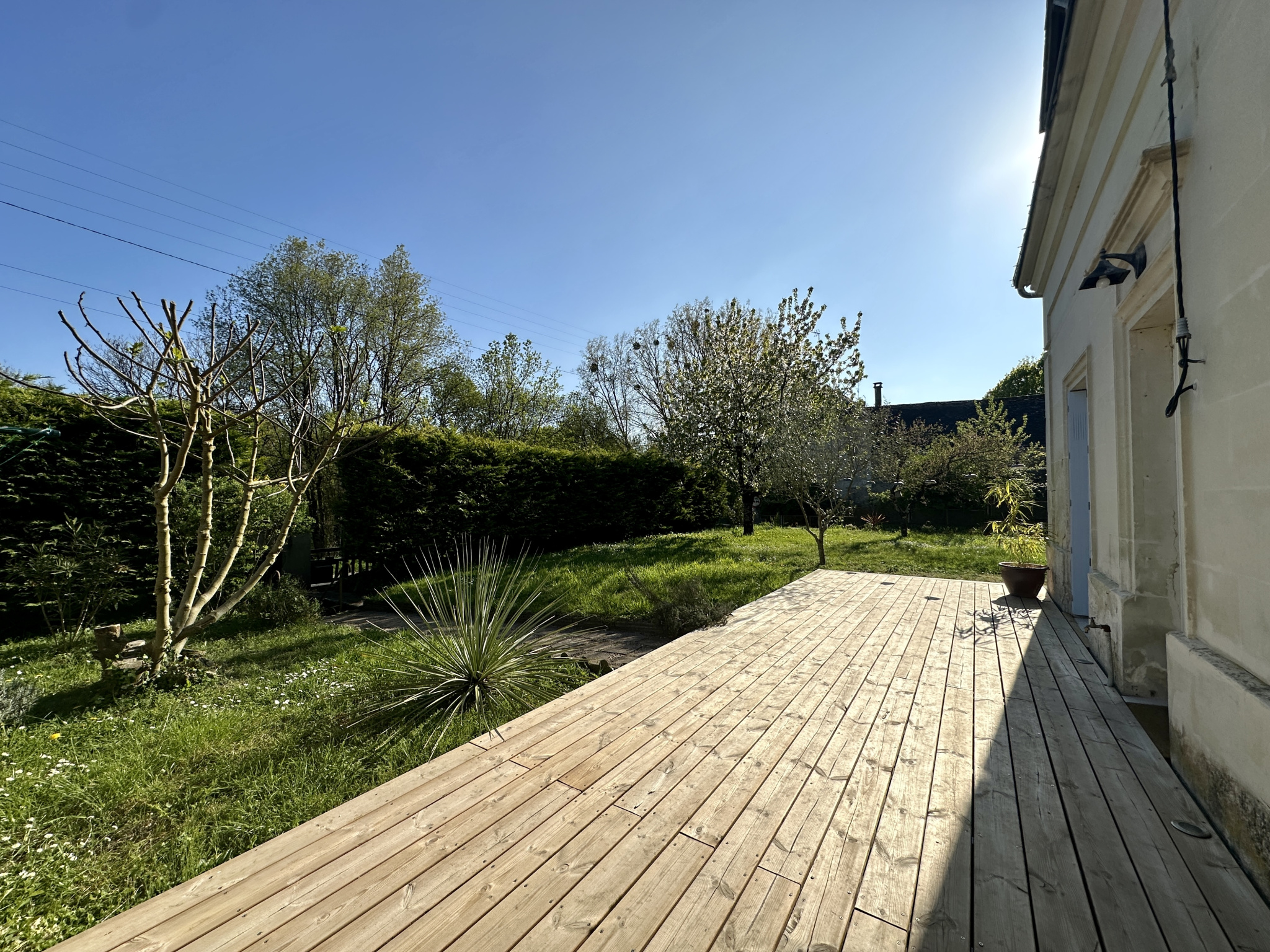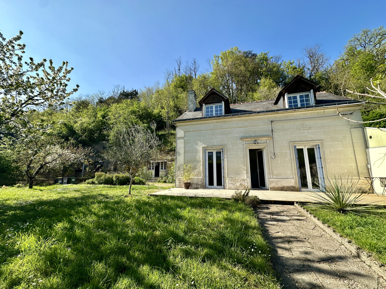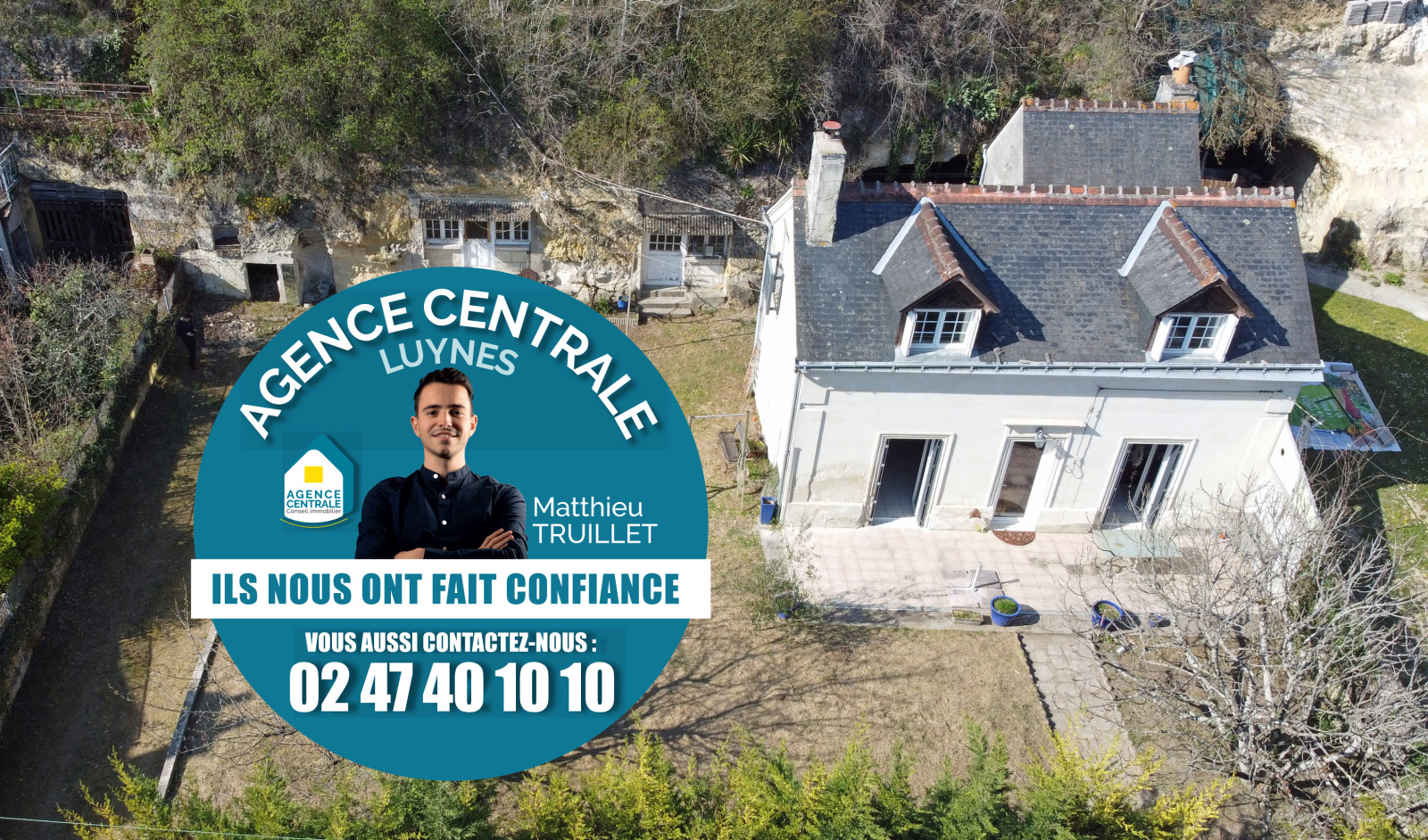 Saint-Etienne-de-Chigny 37230. Exclusivité de votre agence. 95 m² habitables + 3 dépendances troglodytiques (1 de 125 m² + 2 de 65m² chacune communicantes). Séjour avec insert et cuisine ouverte 42 m² exposé PLEIN SUD avec 2 portes-fenêtres s’ouvrant sur la terrasse. Chauffage centrale par pompe à chaleur air/eau (installation 2023). 2 grandes chambres à l’étage 24 m² et 14.5 m². Huisserie doubles vitrage PVC. Jardin entièrement clos 556 m² de plein pied + 1.000 m² sur le coteau accessible par un escalier. Portail électrique (possibilité de rentrer plusieurs véhicules sur le terrain). Pas d'amiante. DPE : D et GES : A. Proximité immédiate des bords de Loire et de belles balades piétonnes. Accès facile vers L'entrée de TOURS (17 kilomètres) et A85 (3' en voiture). Gare SNCF à 2 kilomètres. Commune conviviale (TOURS-Métropole) bénéficiant d'une vie associative active et d'un développement urbain maitrisé. Proximité du collège de Luynes. Cadre naturel préservé tout en vivant à 15 minutes de Tours. Garderie périscolaire, centre aéré, épicerie, boulangerie. Proche arrêt de Bus 57. Le prix s'entend honoraires d'agence inclus à la charge des vendeurs et frais de mutaions (frais de notaire) en sus.