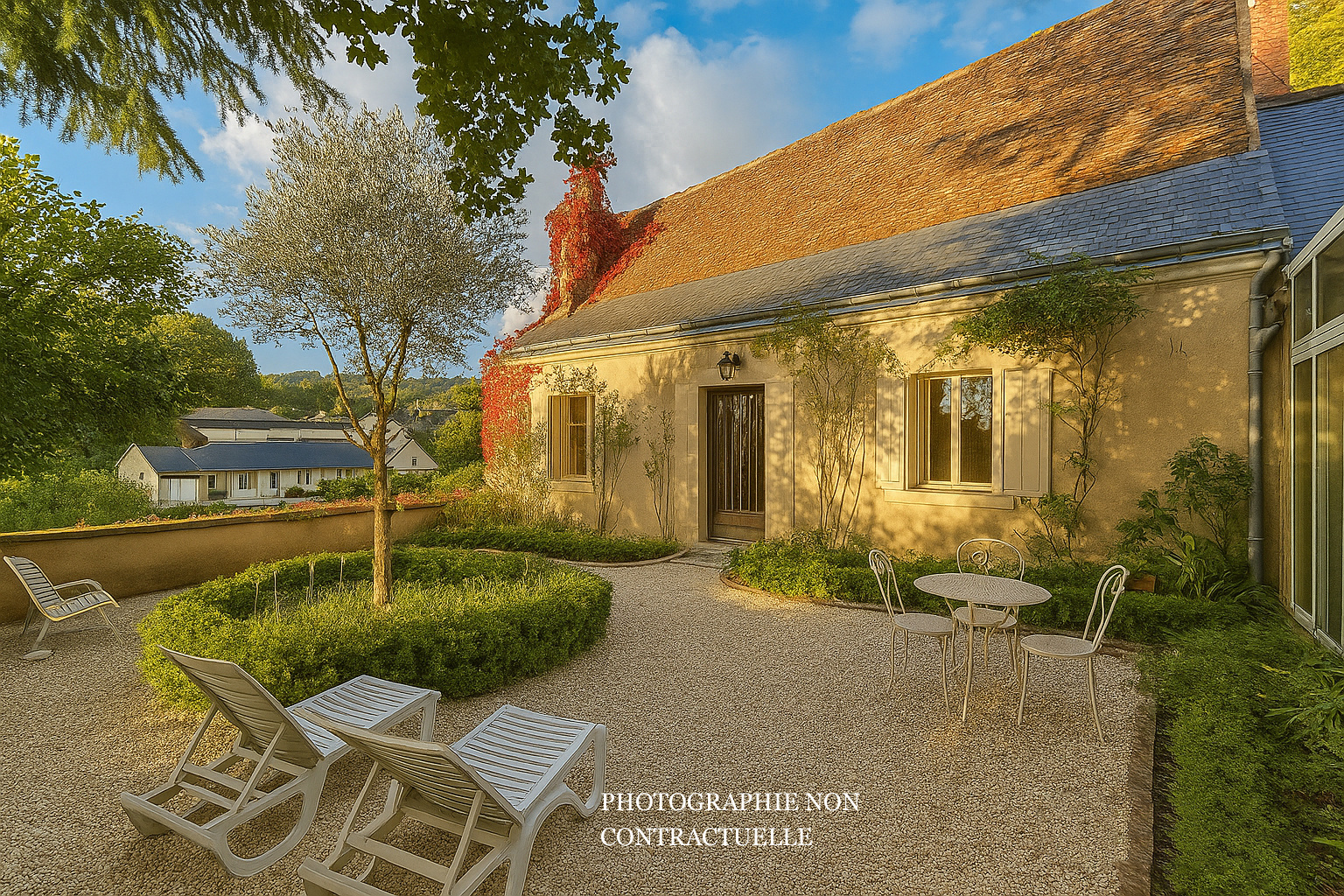 À quelques minutes à pied du centre-bourg et de ses commerces (boulangerie, fromager, charcuterie, etc.). Chemin piéton sécurisé pour accéder aux écoles (publiques et privées), au centre aéré, au square pour enfants et à de belles promenades. Arrêt Fil Bleu (lignes 50 et 57) sur place. Cette élégante maison de caractère en tuffeau de 1850 offre 149,5 m² habitables et 163 m² utiles.