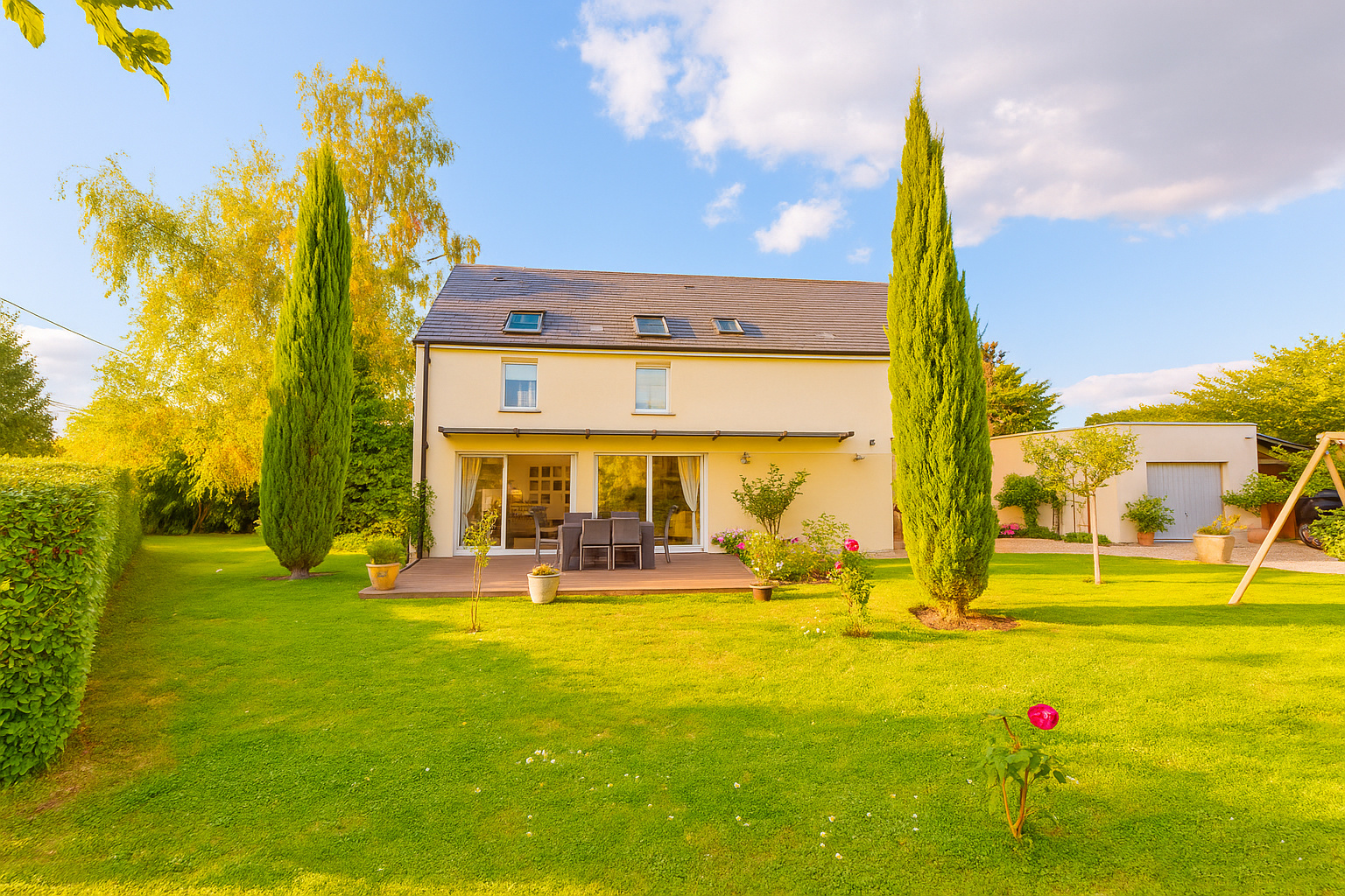 Profitez d’une vie plein sud avec sa belle façade et sa grande terrasse ombragée dominant un superbe jardin arboré de 1 700 m², ornementé de nombreux arbres fruitiers.