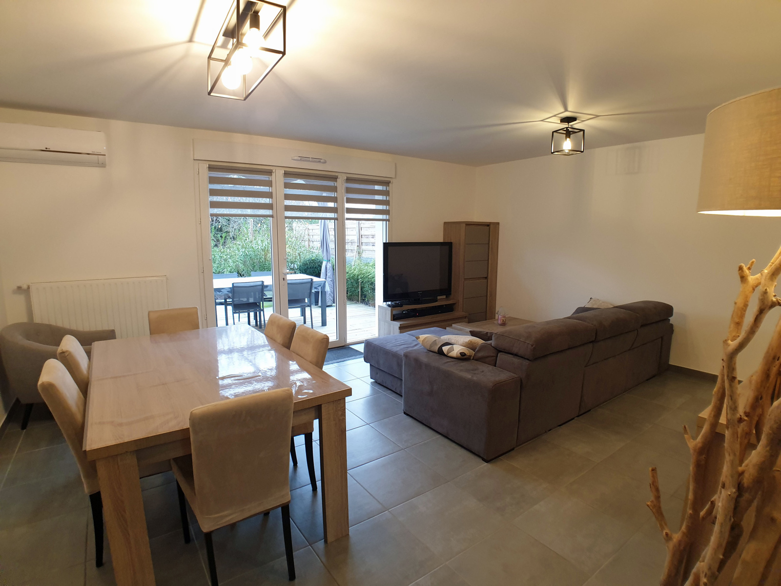 VENDU PAR VOTRE AGENCE. Maison à vendre à FONDETTES (37230). Construction 2018 en parfaite état d’entretien. Décoration moderne et soignée. 85 M2 habitables + garage (avec mezzanine) + place de parking privé + jardin arboré et clos 200 M2 avec terrasse exposée SUD. Pièce de vie 35 M2 avec cuisine équipée de qualité 2019. 3 chambres à l’étage. Chauffage centrale GAZ DE VILLE + pompe à chaleur AIR/AIR avec climatisation dans toutes les pièces. Huisseries double vitrage avec volets roulants électrique. Ballon d’eau chaude thermodynamique. Garages à vélo. Écoles (primaire et maternelle) à proximité de la maison. Proche saint Cyr sur Loire 37540, Luynes 37230, Saint Roch 37390 et Tours 37000 - 37100 - 37200. Arrêt de bus Fil bleu 800 mètres. Cette maison vous est proposée à la vente par l'Agence centrale de FONDETTES 02.47.42.10.00 & LUYNES 02.47.40.10.10. La commune de Fondettes, située dans le département d'Indre-et-Loire, s’inscrit dans la communauté de commune de TOURS METROPOLE s'étend sur 31,8 km² et compte 10 493 habitants au recensement de 2018. Avec une densité de 329 habitants par km², Fondettes a connu une nette hausse de 15,2% de sa population entre 1999 et 2007. Entourée par les communes de Saint-Roch, Luynes et La Riche, Fondettes est située à 5 km au Nord-Ouest de Saint-Cyr-sur-Loire. Document non contractuel. Les prix indiqués s'entendent honoraires d'agence inclus à la charge du vendeur et frais de mutation en sus. Frais de notaire en sus.