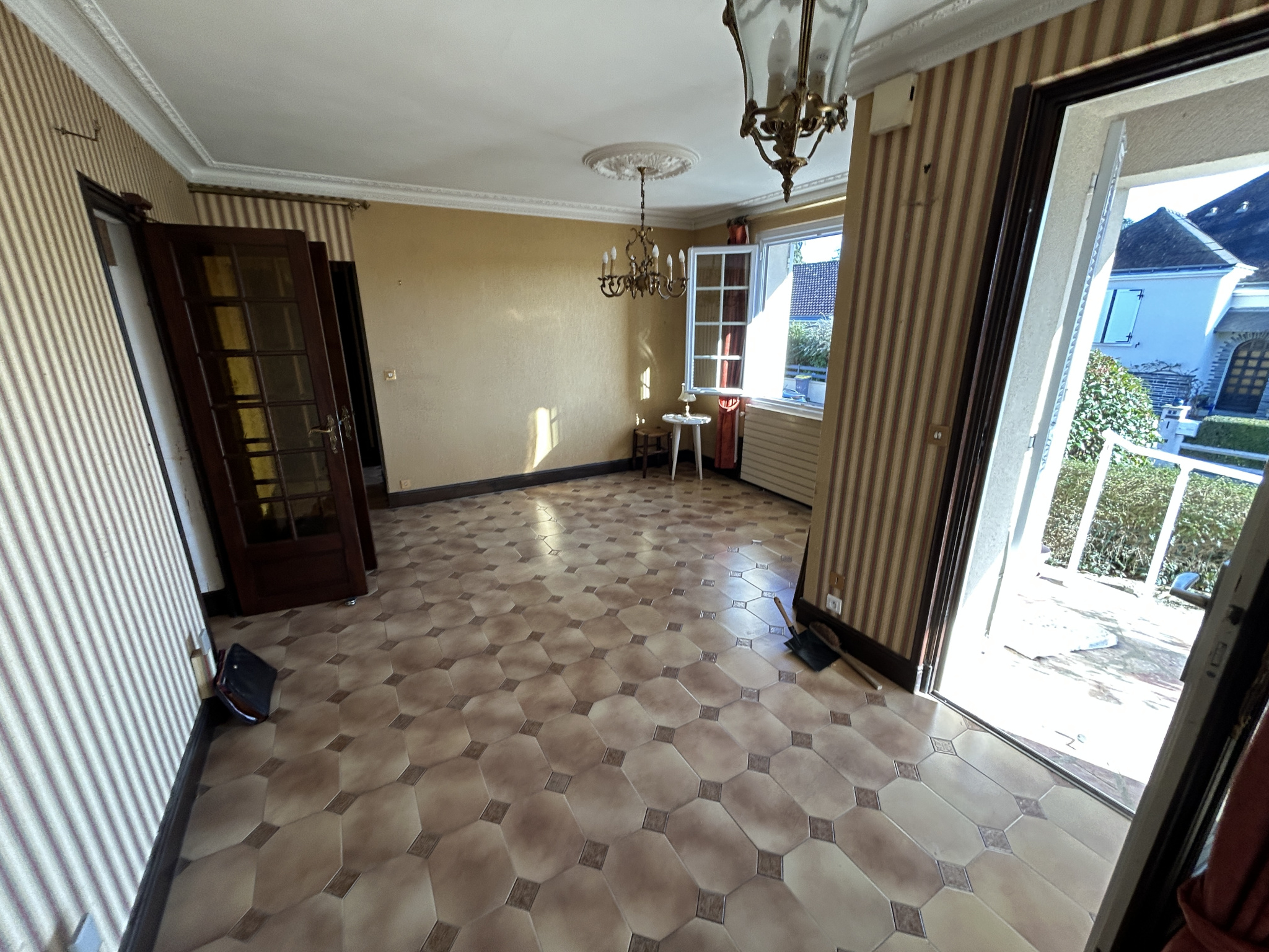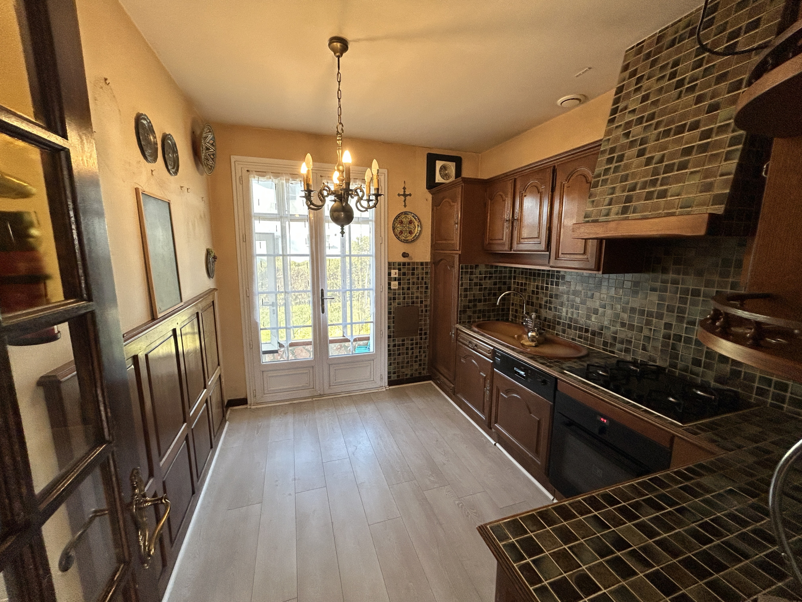 Salle à manger 18 m², salon avec cheminée 22 m², cuisine séparée 8,6 m², dégagement avec placards, 2 chambres 11,2 m² et 10 m², salle de bains 4 m² et w-c séparés.