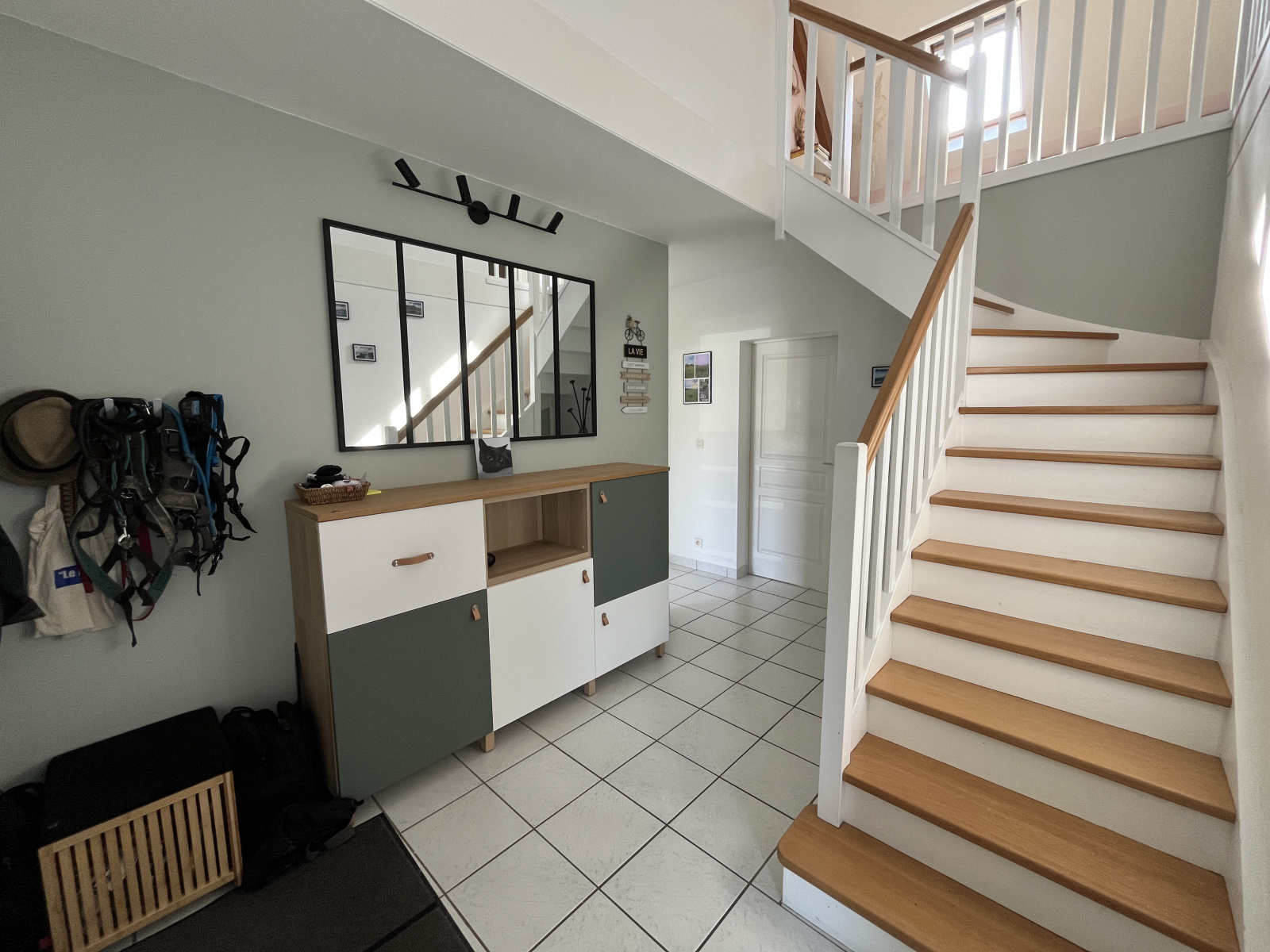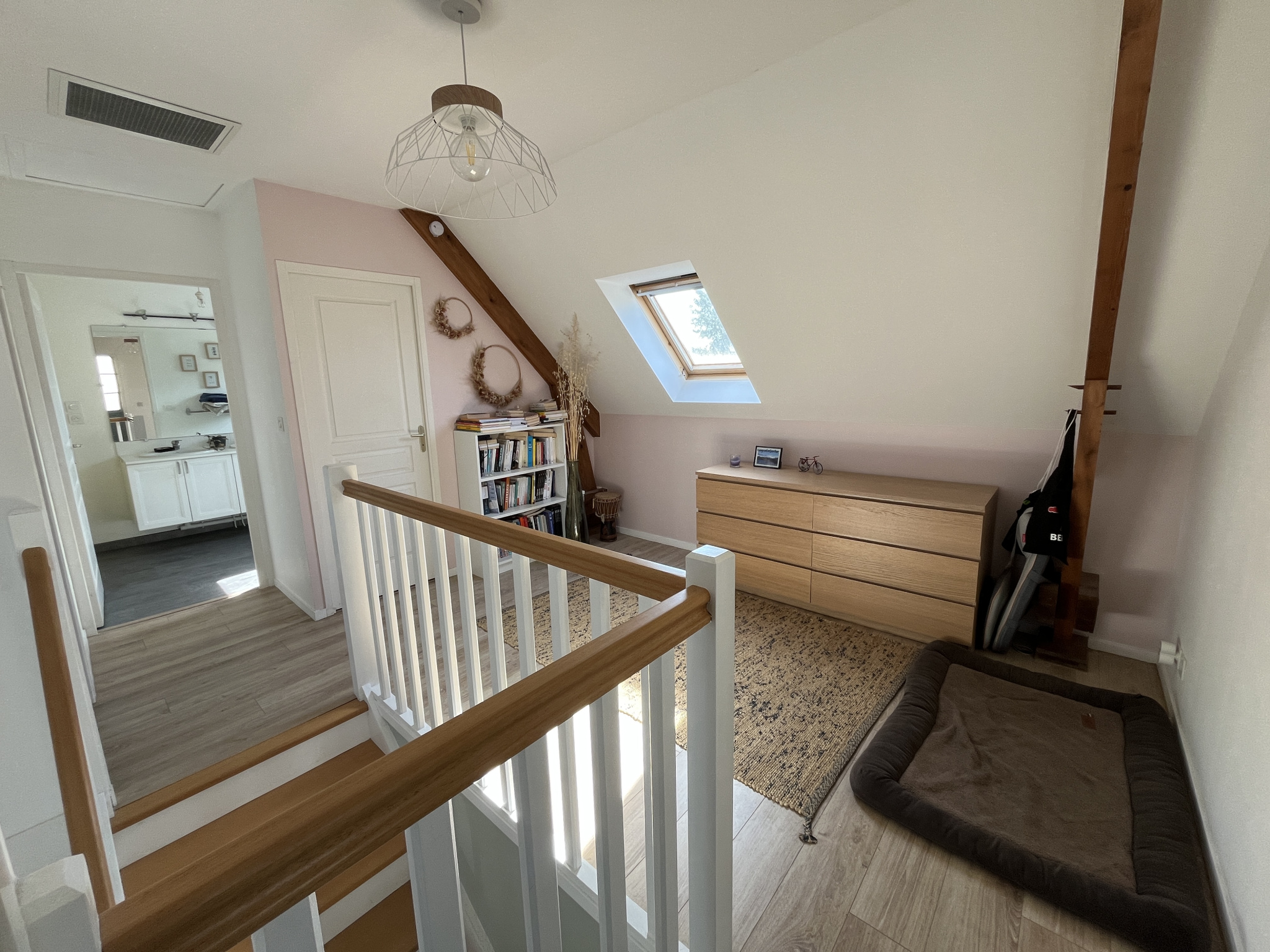 A l’étage : Mezzanine, 3 chambres, salle de bains et w-c séparés