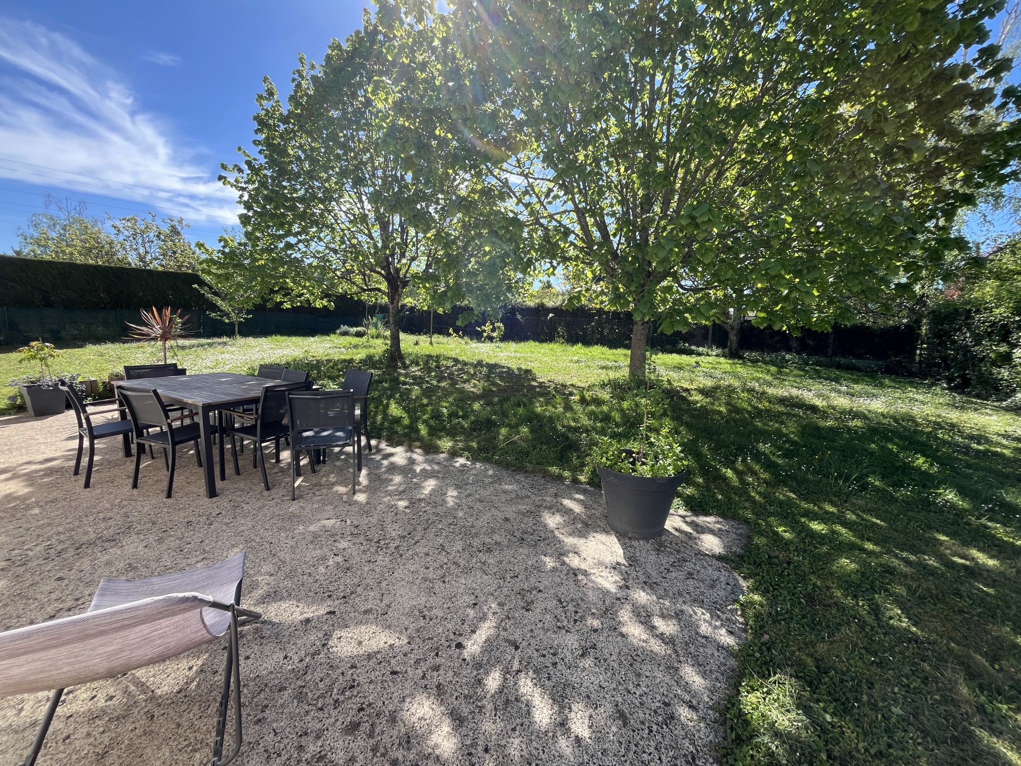 Terrain piscinable de 840 m², entièrement clos et arboré avec terrasse exposée SUD.