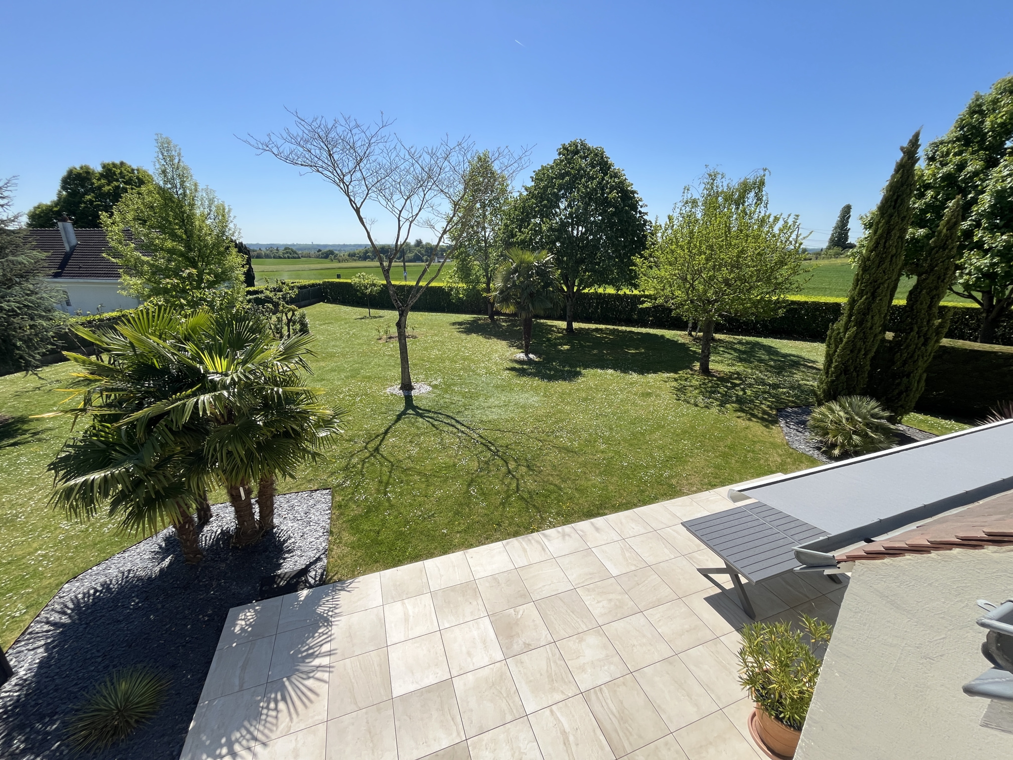 Située dans un environnement calme et verdoyant, cette maison spacieuse offre une vue dégagée sur la campagne tout en restant proche du centre-bourg de Fondettes. Son terrain exceptionnel de 3 200 m², entièrement clos, arboré, constructible et piscinable, en fait un bien rare sur le marché.