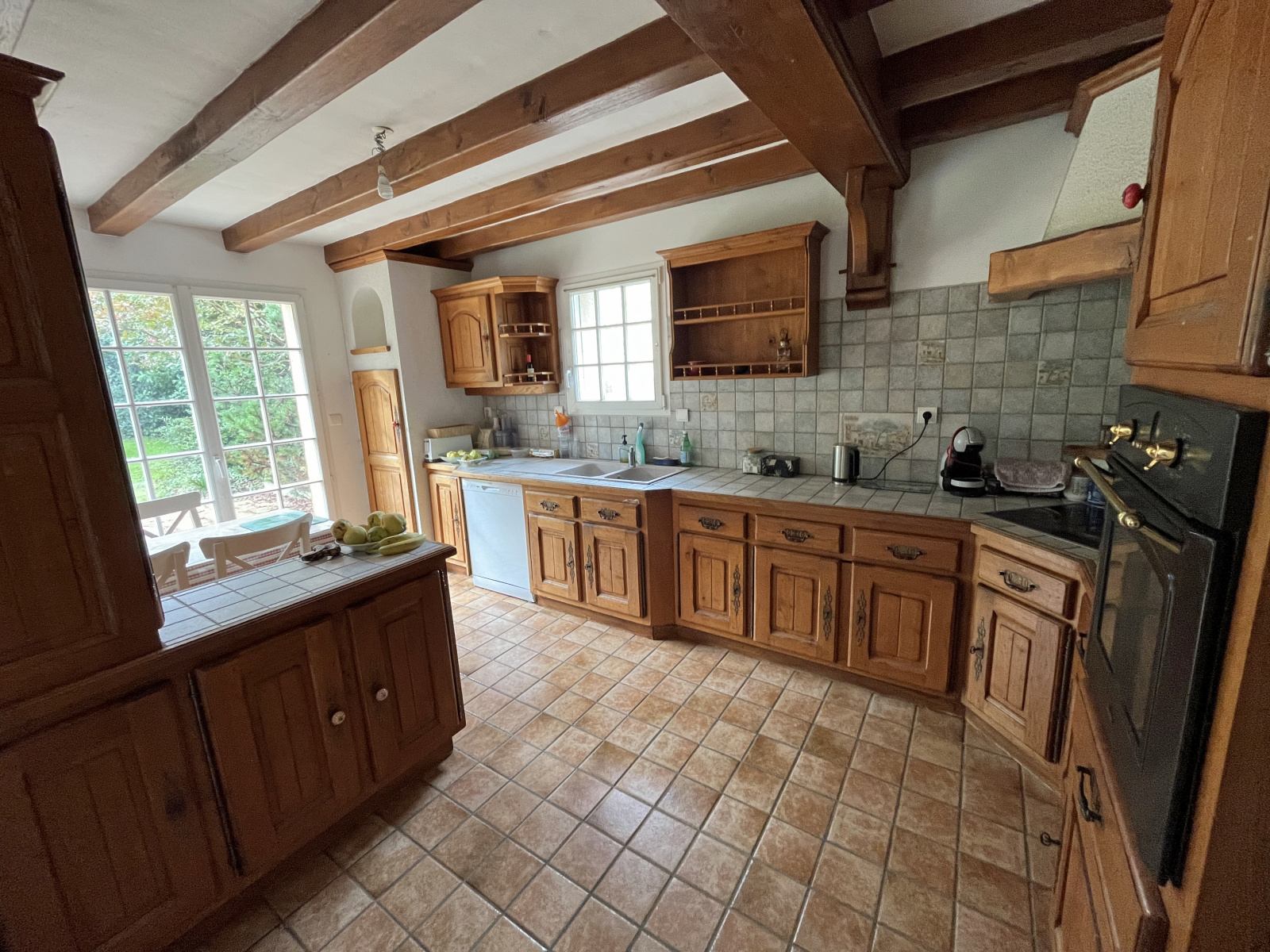 Cuisine séparée entièrement aménagée et équipée 15,3 m² avec ouverture possible sur le séjour de 41 m² donnant accès à une terrasse exposée sud bénéficiant d’une vue dégagée sur le grand jardin.